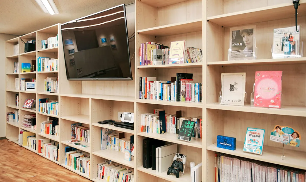 オフィス内には、ビジネス書や専門書など豊富な蔵書を備えたライブラリーを設置。自由に活用でき、日々の学びやスキルアップを後押しします。